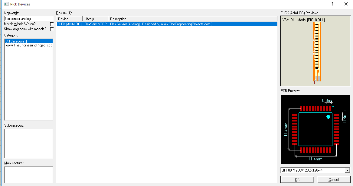 - Select this file and click “OK” As you click OK, your cursor will start blinking with the flex sensor, indicating you can place this sensor anywhere you want on the proteus workspace.