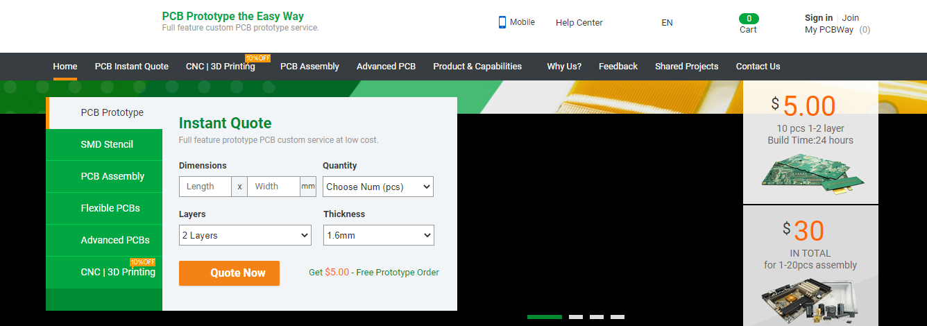 JLCPCB tops the list and for several good reasons. Introduced in 2006, JLCPCB comes with advanced PCB technology that ensures study and compact products with fully automated production lines. They offer an easy-to-use online system to order PCB; you just need to fill up your requirements on the online form and upload the Gerber file, and you’ll get a quick quote based on your needs.