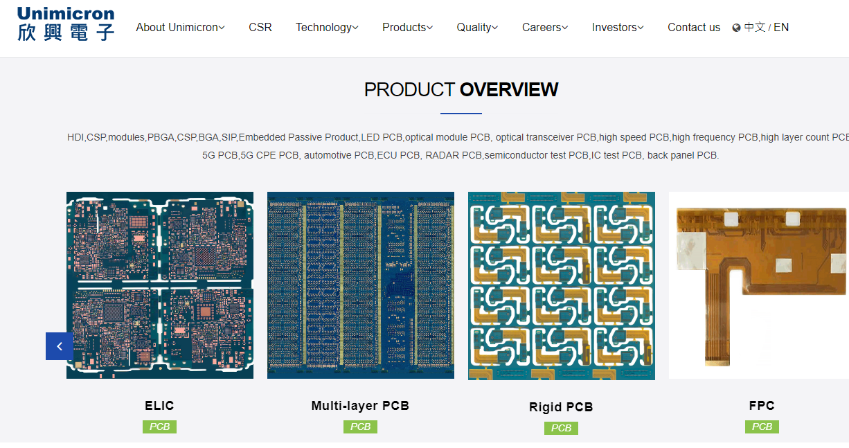 Moreover, high-end materials and sophisticated advanced technology are always considered in the manufacturing process. Unimicron has recently participated in new product and technology development projects with research institutes including IZM in Germany and Georgia Institute of Technology in the USA.