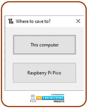 - Save the program. We can save the program either on computer or on Raspberry Pi Pico board.