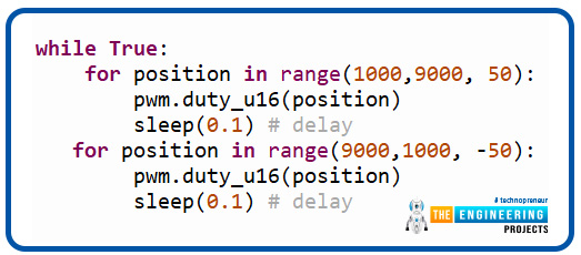 That’s all about interfacing and controlling a servo motor with Raspberry Pi Pico module and pulse width modulation.