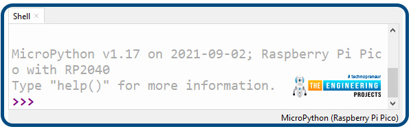- You should see this MicroPython Version details in Shell section (to ensure that Thonny is ready to program your Raspberry Pi Pico board) as shown below: